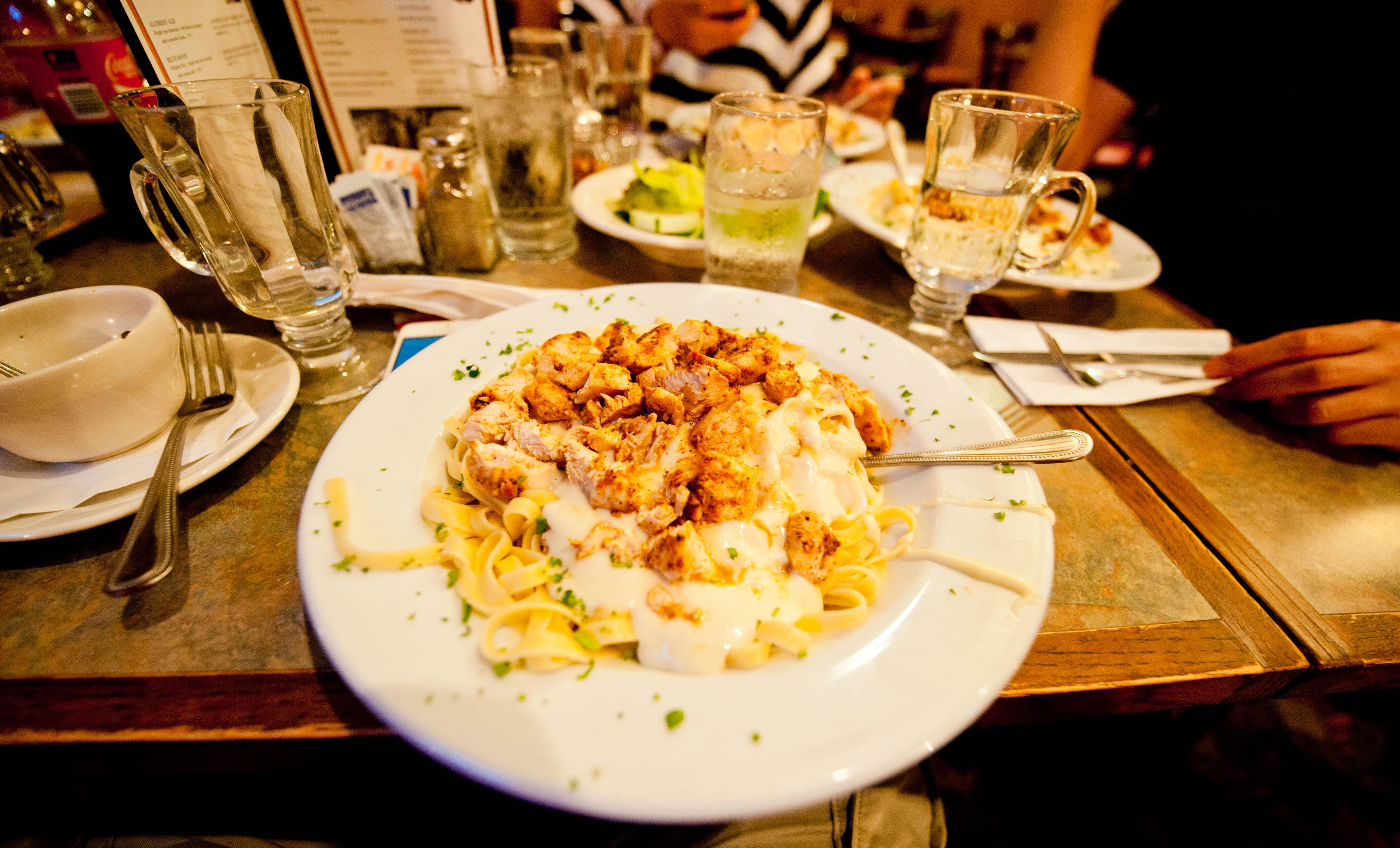 他们家的芝士鸡肉意面几乎太适口了,浓浓的芝士滋味。