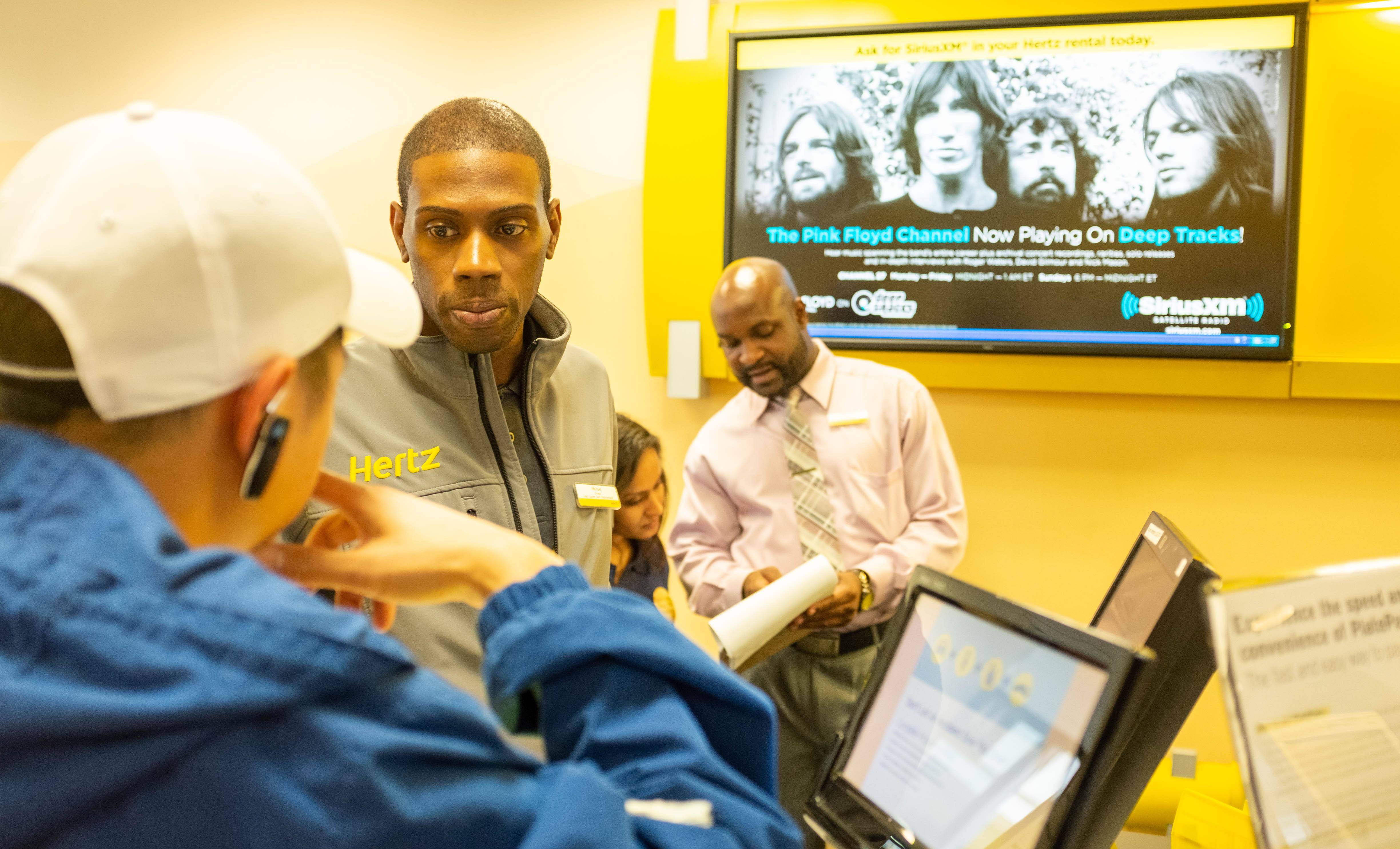 dollar的负责东谈主很温煦的跟咱们攀谈,传说咱们走66号公路,一阵我草。其后传说咱们的车是赫兹的,又一阵我草