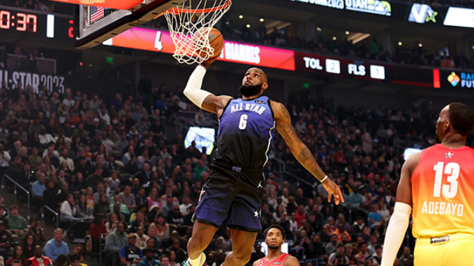 全明星赛中场休息,官方举办典礼庆祝詹姆斯加冕得分王;