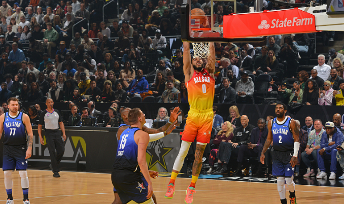 第四节,恩比德暴扣,哈利伯顿加快过掉真贵上篮,米切尔三分球射中。塔图姆扣篮,哈利伯顿和塔图姆对飚三分球。詹姆斯队贯穿追分,利拉德三分球绝杀,字母哥队告捷。